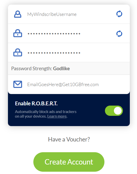 - First, sign up for an account on our website using this link: https://windscribe.com/signup. Providing an email address is optional but if you add and confirm your email, you will get 10GB of monthly VPN data for free as opposed to the 2GB without an email.