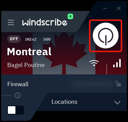- Once logged in, you can connect by pressing the big ON button, or by expanding the location list and selecting an available location.